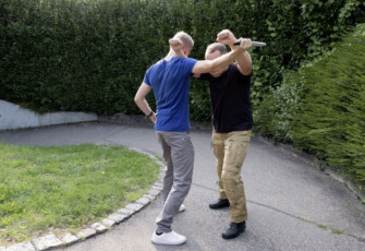 Taktisch richtiges Reagieren unter Stress und unter Berücksichtigung der rechtlichen Rahmenbedingungen ist ein wichtiger Bestandteil unseres KRAV MAGA-Trainings. Gefahren sollen möglichst frühzeitig erkannt und vermieden werden. Für den Fall, dass die Deeskalationskonzepte versagen, werden einfache, hoch effektive und defensiv ausgerichtete Nahkampftechniken vermittelt.